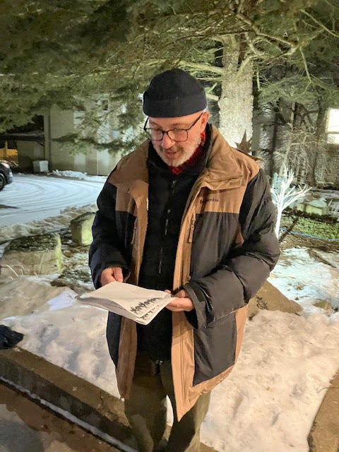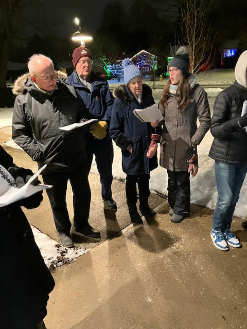 Carols in the Courtyard. Our first attempt and judged a success! We had over 20 in attendance, made up of Parishioners of all ages, neighbours and a visitor from St. George's. In addition to melodious carols there was hot chocolate and apple cider and treats. Thank you to everyone who attended, our conductor Craig Smith and Lisa Bogue for keeping us on pitch. Fraser Haley is especially grateful for the Twelve Days of Christmas. He had been practising it for weeks. Just wait till next year,