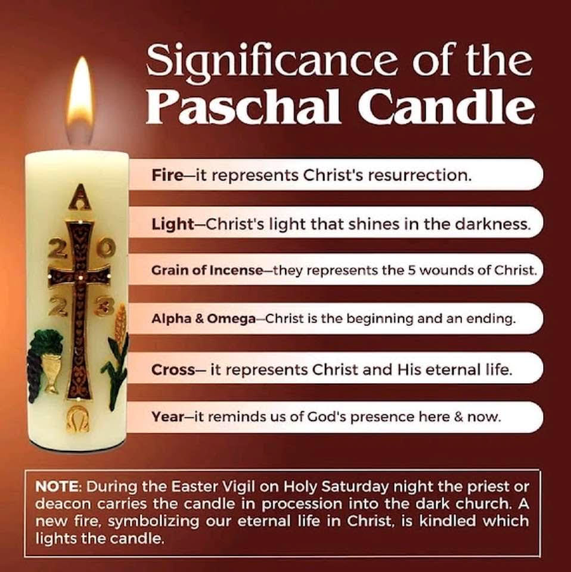 St. Martin's, Our History and Our Artifacts. The Paschal Candle tells a story. While each candle is slightly different, the picture below explains its importance. At St. Martin's the candle is first lit on Easter Sunday.